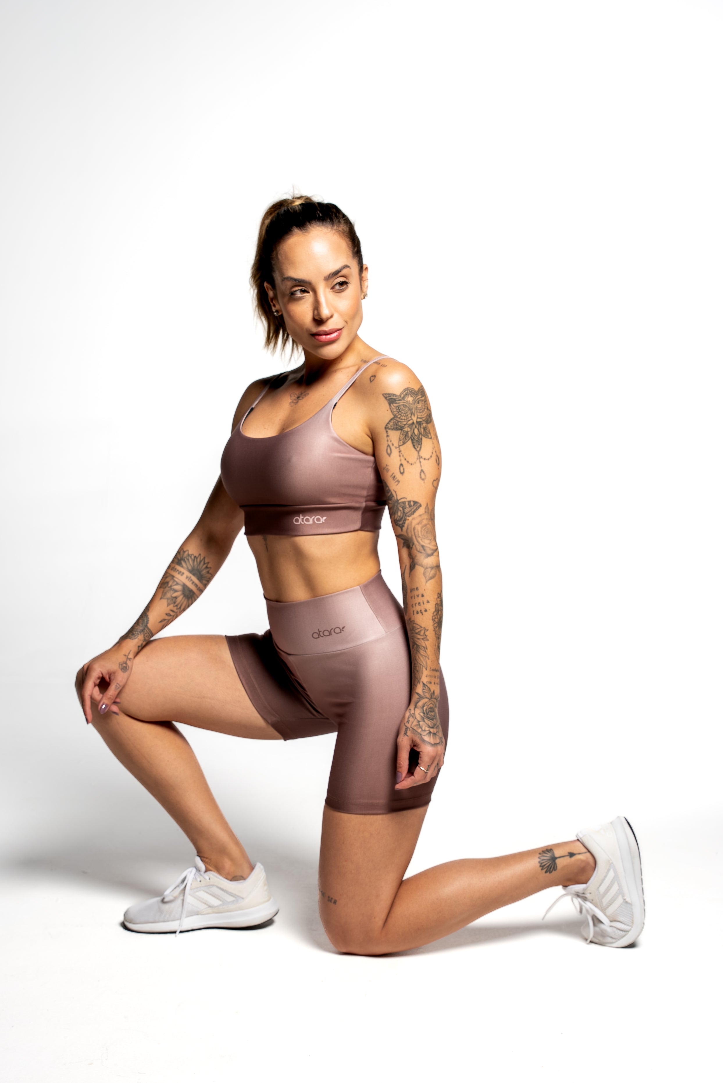- Parte Externa em Poliéster: O poliéster externo permite que possamos aplicar as estampas mais vibrantes e detalhadas, destacando seu corpo divino e dando aquele toque especial de estilo aos seus treinos.