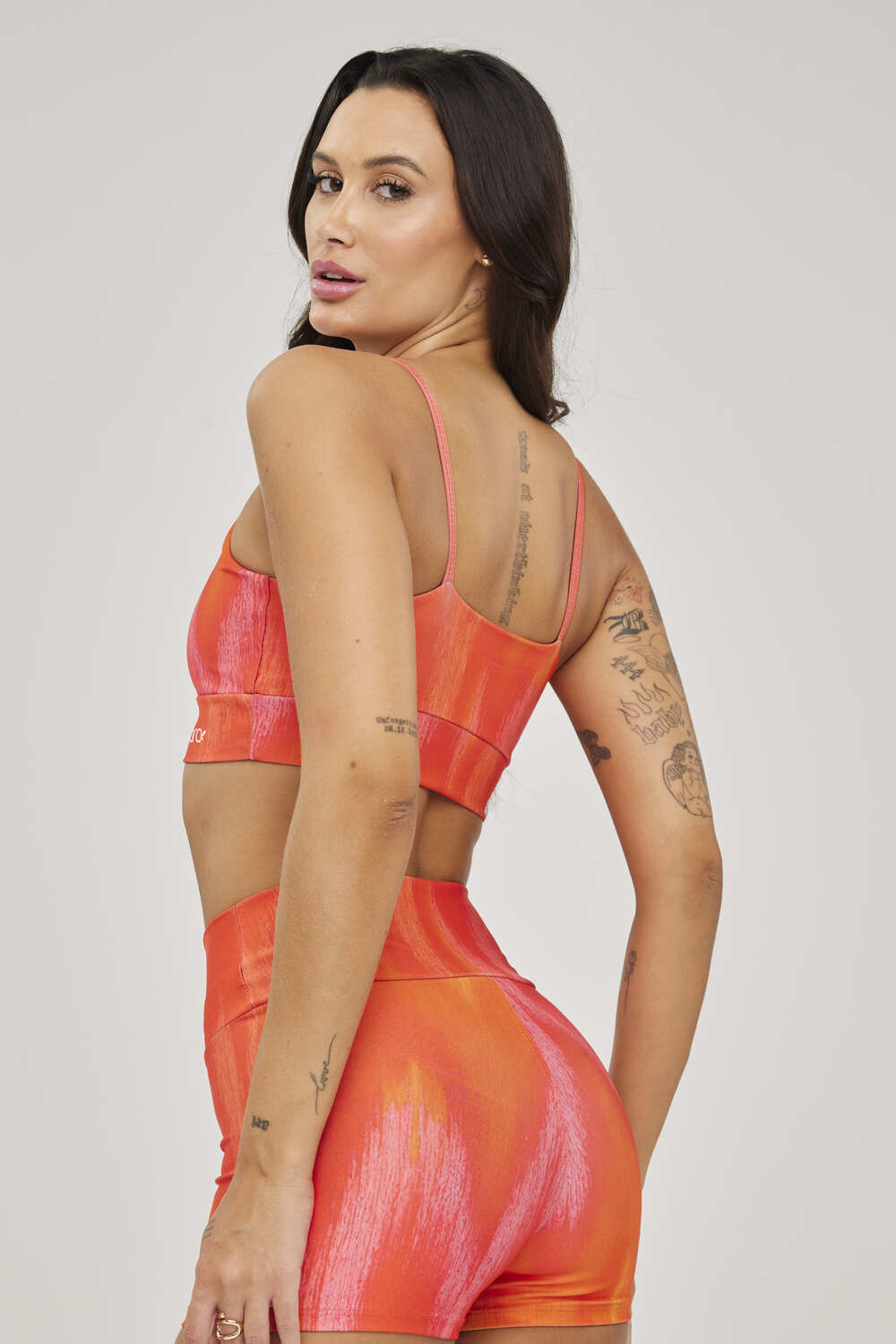 - Parte Externa em Poliéster: O poliéster externo permite que possamos aplicar as estampas mais vibrantes e detalhadas, destacando seu corpo divino e adicionando um toque especial de estilo aos seus treinos.