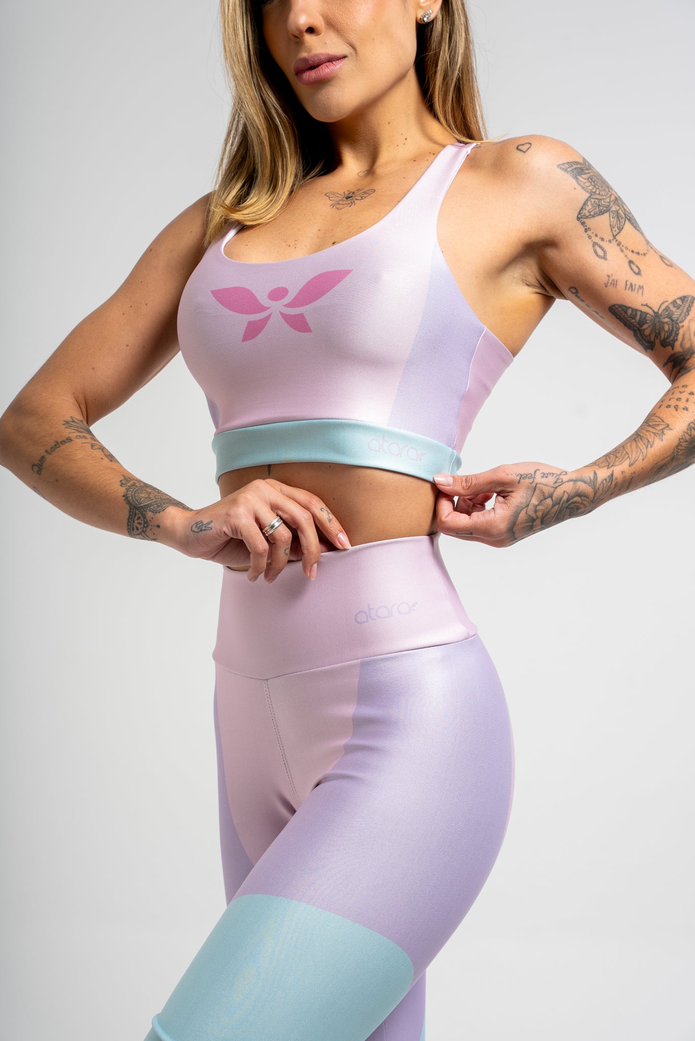 - Parte Externa em Poliéster: O poliéster externo permite que possamos aplicar as estampas mais vibrantes e compostas, destacando seu corpo divino e adicionando um toque especial de estilo aos seus treinos.