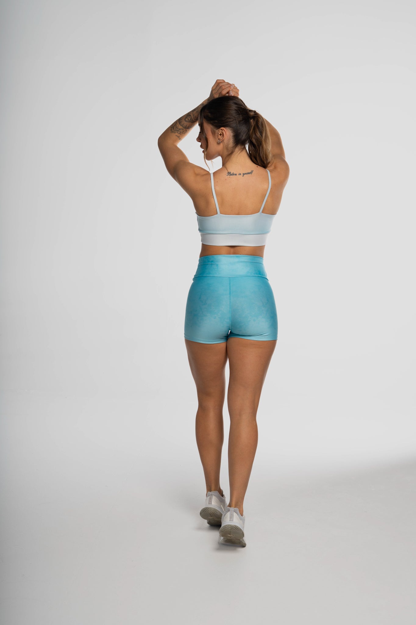 - Parte Externa em Poliéster: O poliéster externo permite que possamos aplicar as estampas mais vibrantes e detalhadas, destacando seu corpo divino e adicionando um toque especial de estilo aos seus treinos.