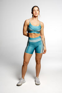 Design com compressão para firmeza e modelagem durante os movimentos.