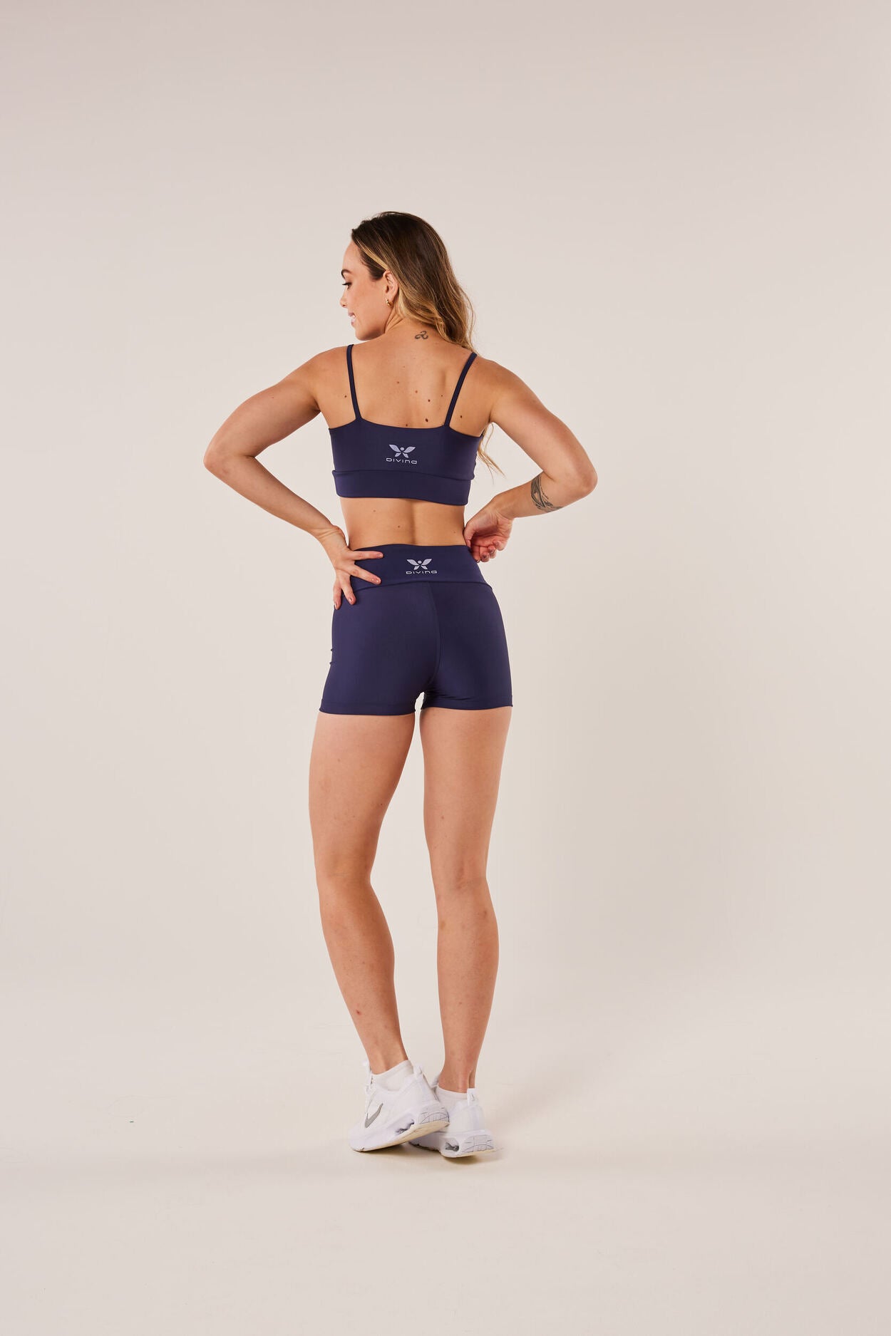 - Parte Externa em Poliéster: O poliéster externo permite que possamos aplicar as estampas mais vibrantes e detalhadas, destacando seu corpo divino e adicionando um toque especial de estilo aos seus treinos.