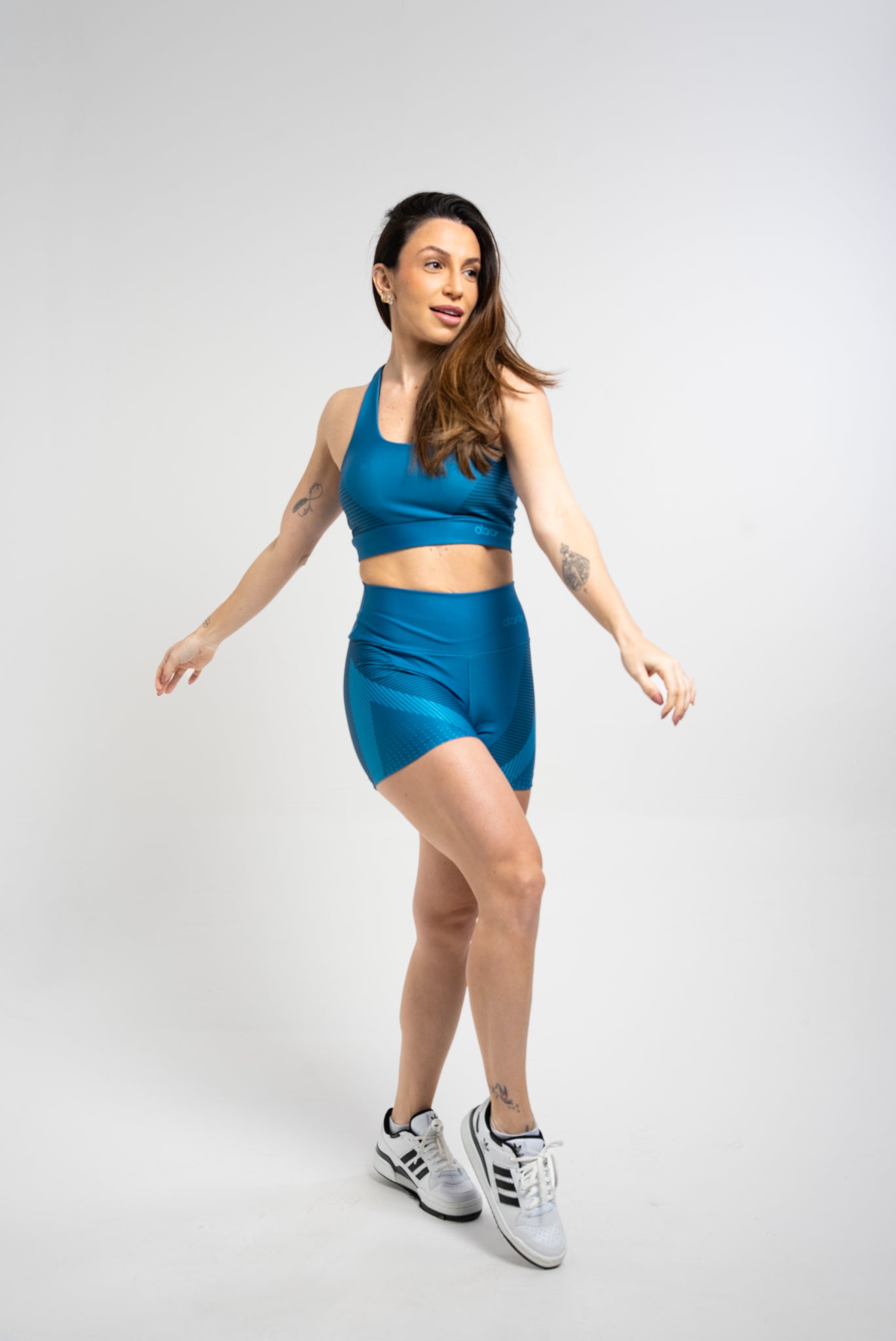 - Respirabilidade: O tecido respirável mantém a pele fresca e seca, mesmo durante os treinos mais intensos, proporcionando uma sensação de bem-estar durante todo o exercício.